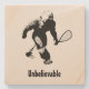 Protect your furniture with these funny racquetball themed coasters! Bigfoot holding a racquetball racket sits above the text "Unbelievable," which can be customized with a name or other text of your choice for a personal touch. Makes a practical and unique housewarming gift or stocking stuffer for fans of racquet sports.