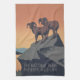 Vintage wildlife poster with Mountain Goats / Bighorn Sheep for National Park Service - This is a vintage wildlife poster is from the U.S. National Park Service showing wild bighorn sheep standing on rocks. The poster is very graphic, created between 1936 and 1939 published by the Works Progress Administration Federal Art Project (WPA). The beautiful poster is done in orange and black, with blue mountains and a lake in the background. The bighorn sheep / mountain goat poster promotes travel to national parks. This beautiful wildlife poster looks great on our gifts!