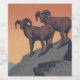 Vintage wildlife poster with Mountain Goats / Bighorn Sheep for National Park Service - This is a vintage wildlife poster is from the U.S. National Park Service showing wild bighorn sheep standing on rocks. The poster is very graphic, created between 1936 and 1939 published by the Works Progress Administration Federal Art Project (WPA). The beautiful poster is done in orange and black, with blue mountains and a lake in the background. The bighorn sheep / mountain goat poster promotes travel to national parks. This beautiful wildlife poster looks great on our gifts!