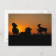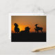 A small herd of bighorn sheep settle down for the night. Their silhouettes stand against the blazing sunset behind them. Computer art by Kathie Miller.