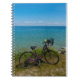 A purple bike sits in front of the beautiful waters of Lake Huron from Mackinac Island, Michigan. Mackinac has a ban against motor vehicles (except emergency vehicles).