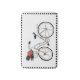Enjoy stepping directly from the shower to your bike! This playful bathmat shows a bicycle with a basket holding a dog and a bunch of flowers. Black, white and a touch of colour will work in any bathroom. Background colour can be customised.