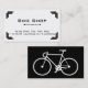 Bike Shop Business Card with futuristic border. Card has a clean urban look to it. Back of card has a white silhouette of a road bike. Perfect for a bike shop, bicycle repair shop, cyclist shop, or bike mechanic.