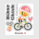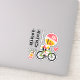 Show you love for cycling with these cute kiss cut vinyl cycling chick vinyl stickers that say biker chick. A cute yellow chick wears a pink helmet, black and white biker shorts, hot pink top and tennis shoes. 6 individual stickers: "biker" "chick", two chicks one large, one smaller, a heart and the copyright. Artwork © Chrissy H. Studios, LLC. All rights reserved.