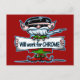 Funny biker elf sporting a sign that says "Will work for Chrome". Unique holiday gifts and apparel for bikers, Harley and motorcycle riders.