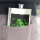 Biker green-black flasks are Halloween fun for bikers and fans of 'old school' motorcycle riding. Biker is Steamy Raimon original art.