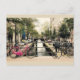 Take in this scenic image capturing bikes leaning up against a railing along the famous Amsterdam Canals.