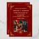 This elegant Chinese wedding invitation features a photo, a gold foil Chinese frame and round gold double happiness symbol on a dark red background. With a traditional Chinese text at the backside. Chinese wedding invitation or tea ceremony invitation.