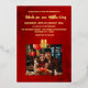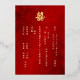 This elegant Chinese wedding invitation features a photo and, a real gold foil round gold double happiness symbol on a floral ruby red shimmering background. Bride and groom names in an elegant handwritten script. With a traditional Chinese text at the backside.Chinese wedding invitation or tea ceremony invitation.