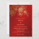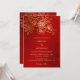 This elegant Chinese wedding invitation features a golden double happiness symbol and gold flowers on a floral ruby red shimmering background. Bride and groom names in an elegant handwritten script. Chinese wedding invitation or tea ceremony invitation. With a traditional Chinese text on the backside.