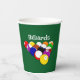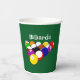 Billiard Balls Design Paper Cup with customisable text and background colour.