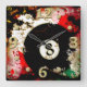 BILLIARDS BALL NUMBER 8 SQUARE WALL CLOCK