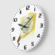 The wall clock it's very modern and look very good in my kitchen. The quality of the product is very good. The only problem I have is that I thought the wall clock was going to be a little bigger, since I order the large clock, for me this was just a regular size clock . I can imagine if I had order the small one. but besides I'm happy. The design of the product was great and the quality.