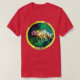 I give wanted to give this a 4 instead of a 5 because these Basic DARK T0shirts run unexpectedly SLIM or Narrow. Which is great if you do not have a potbelly, but I have a paunch. It isn't the shirt's fault that I've got a beer belly. The design and shirt itself is a quality cotton shirt. The color is more of a deep purple, but still a very pretty color. The Basic DARK T-shirts run a bit SLIMMER than the Basic Ts. The neck is a fraction narrower (or seems to be narrower) also. I'm a paunchy middle-aged woman and my neck is 12 inches (31cm) thick and the neckline fell about the same as in the photo of the man, and I had the desire to tug it a bit. So if you're a thick necked man or like loose shirts, be aware these are slimmer shirts. Once I get rid of my lockdown paunch it'll look great. The shirt washed well in cold water with no apparent bleeding. We don't have a dryer, so it hung dry. Did not shrink. Love the colors and the design. The design looks smaller on my shirt than it does on the model on-line. But still, it looks good on the shirt. The printing looks as it does on the model, just the size seems fractionally smaller. Washed garment in cold water, hung dry and design appeared unaffected.