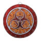 A beautiful faux wood inlaid bio hazard symbol with flourishes and faux pearl trim, crafted in only the finest of digital image editing software.