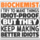 Funny Biochemist Sayings "Biochemist I Try To Make Things Idiot Proof But They Keep Making Better Idiots". Grab this Funny Biochemist design as a funny gifts for an awesome mum, dad or friend.