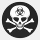 Black and white biohazard warning symbol skull and crossbones sticker.