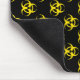 Black mousepad with a repeating biohazard symbol pattern in bright yellow and editable text field for easy customisation with a name or message.