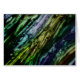 Threads of diffuse cold light glow along the textured ridges of this highly-detailed 3D digital abstract art, like bioluminescent life discovered in the surreal textures of the deep sea. Primary colours are blue, green, and yellow.