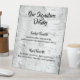 Wedding sign for signature drinks explanation. White birch bark design with black text. Customise each template with the Bride’s and Groom’s favourite cocktails. The standing sign can be added to each table or set on the bar.