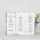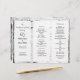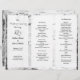 Birch bark folded wedding program. Country or outdoor wedding theme, with three sections of text. Create a tri-fold, or accordion fold, program for the ceremony. Two carved hearts design on the front above the couple's names. Rustic style in black and white.