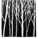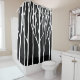 Birch Forest by Leslie Peppers is a peaceful artwork in black and white Minimalism of birch trees set against a midnight background on a shower curtain for home