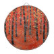 A contemporary landscape painting of a birch or aspen tree forest in rich tones of red, orange and yellow. Original art by Nic Squirrell.