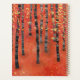 A modern abstract landscape painting of a birch or aspen tree forest in the autumn in rich tones of red, orange and yellow. Original art by Nic Squirrell.