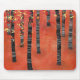 A painting of a birch or aspen tree forest in the autumn in rich tones of red, orange and yellow. Original art by Nic Squirrell.