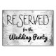 Birch tree wedding reserved table sign. Place this card on the reception tables or chairs to save a place for important members of the wedding party, the bride and groom, individuals, or reserve entire sections. Black text over white tree bark. Country wedding themed table seating cards.