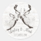 White birch bark with buck and doe deer design and personalised text in dark brown for the names and wedding date of the bride and groom.