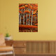 This abstract painting of birch trees in flaming orange fall leaves in contrast to the beautiful white bark will lighten any room.
