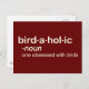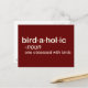 This funny birder design is formatted as a definition that would be found in the dictionary. Here the word is birdaholic and the definition is "one obsessed with birds." You might know some birders like that, or maybe you're a birdaholic yourself! You can totally customise this gift! Add text, change the colour, move the design around, pick a different style - make it your own!