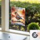 Bring nature into your room with this window cling featuring a lovely bird in an abstract autumn setting.
