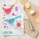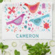 Bird and Wildflower Floral Watercolor Personalised Tea Towel