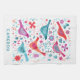 Modern and contemporary watercolor birds and wild flowers pattern in red, pink, purple and teal jewel tones on a white background. Original art by Nic Squirrell. Change the name to personnalize.