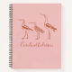 Personalised Notebook with Minimalist Blush Pink and Rust Brown Birds Line Art Drawing
