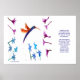 Poster featuring the beautiful hummingbird floating free surrounded by flowers. Includes the hummingbird legend and would make a great gift for bird lovers. This floral bird art is from my original glass painting. ©Annabel Potter