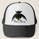 This cute hat features a cartoon style image of a crow. The crow is black with yellow eyes and has its wings outstretched. Underneath the crow is the slogan "Bird brain", written in ancient style black text. This would make a funny novelty gift for a ditzy friend.