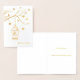 This gold foil image greeting card makes a simple, but elegant Valentine Day card for your love. The front features an image of a bird cage hanging from a tree branch. Hearts are scattered around the birds on the branches. The bottom of the card has a custom text field. The inside has two more text fields in gold. Make it say whatever you'd like! Pretty, and memorable!