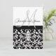 Elegant Monogram, Names and Black and White Damask Wedding Invitations. Monogram and Names Invitation Layout and Design by Elke Clarke © 2008, 2009, 2010. Damask Pattern Licensed.com and WhiteWhimsicalWeddings.blogspot.com. Customise with your monogram names and wedding colours. Add all your wedding information on the back of the card using Zazzle's easy to use menu prompts.