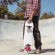 At the center of the deck’s artwork, you might see a dynamic mix of geometric forms—sharp lines intersecting with flowing curves—set against a vivid background. Bright pops of neon green, electric blue, and magenta could create a sense of movement, making the board stand out whether it’s in motion or sitting still. The imagery might evoke urban energy, with subtle hints to digital culture or street art woven into the design.