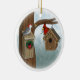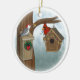 The original design has a woodpecker and a cardinal decorating their bird houses for Christmas. The woodpecker is offering a sunflower seed gift to his neighbour. Personalise with text if you wish.