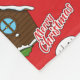 An illustration of a bird house with Christmas decorations of holly berries and hanging balls where a Blackbird is happily singing and wishes you a Merry Christmas. The roof is covered with snow. This design is made for winter holiday celebration and bird lovers.