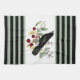 Accessorise your kitchen with a set of blackbird designed kitchen or hand towels. This towel features a greenish-grey and black striped with a white overlay for the watercolor blackbird design. Buy a set of towels for yourself or give as a gift to that special someone.