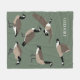 Create a personalised gift that's perfect for bird lovers. This custom fleece blanket has realistic style illustrations of Canada geese in brown white and black against a sage green background. At the top is a spot to add a name or other text in white lettering.