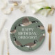 Throw a truly wild party with these personalised party supplies. These paper plates are ready to be customised with your own message in white lettering in the centre. The sage green coloured plates feature illustrations of Canada geese in brown, black and white making them perfect for birthday parties and other events honouring bird lovers.