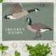 Create a personalised gift that's perfect for bird lovers. This custom kitchen towel has realistic style illustrations of Canada geese in brown white and black set against a sage green background. It's ready to personalised with your own message in the lower corner in white lettering.