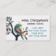Cute abstract style bird with measuring tape on this business card or packaging tag for sewing projects, fabric crafts or alterations, personalised with your choice of fonts, text, and text colours, perfect for craft shows, product sale.
