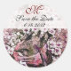 BIRD NEST Save The Date Monogram,White Pink Red Classic Round Sticker